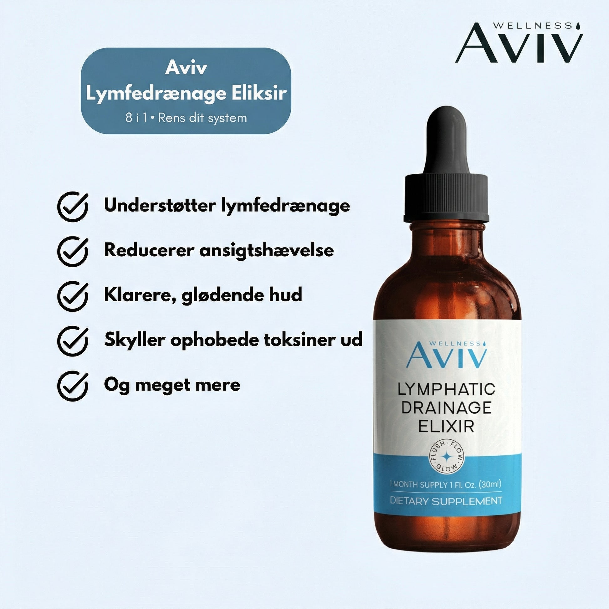 Lymfedrænage fra AVIV™ indeholder ingredienser, der er videnskabeligt bevist at understøtte naturlig eliminering af affaldsstoffer, binde cellulære toksiner, styrke metabolisk funktion, give potente antioxidanter til forsvar mod frie radikaler mod oxidativ stress og fremme cellulær regenerering.